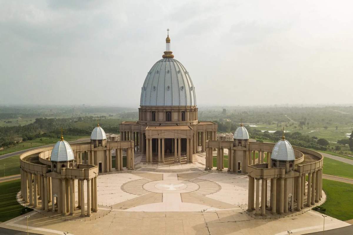 Με την άφιξή μας στο Γιαμουσσούκρο, θα επισκεφθούμε τη Βασιλική της Παναγίας της Ειρήνης, ένα από τα μεγαλύτερα και εντυπωσιακότερα χριστιανικά μνημεία στον κόσμο, που χτίστηκε βασισμένη στο πρότυπο του Αγίου Πέτρου της Ρώμης - η ομοιότητα μάλιστα στην κατασκευή είναι εμφανής. Ο ναός εγκαινιάστηκε το 1990, ξεπερνώντας έκτοτε τον Άγιο Πέτρο ως η μεγαλύτερη (σε συνολική έκταση) εκκλησία του κόσμου, και αποκτώντας με το επίτευγμα αυτό τη δική της θέση στο Βιβλίο των Ρεκόρ Γκίνες. Μπορεί να φιλοξενήσει 18.000 άτομα (ο Άγιος Πέτρος περίπου 60.000), αν και συνήθως το ποίμνιο που παρακολουθεί τις λειτουργίες δεν ξεπερνά τις μερικές εκατοντάδες. Στη συνέχεια, θα περάσουμε από το πρώην προεδρικό μέγαρο, όπου στις λίμνες που το περιβάλλουν καραδοκούν κροκόδειλοι, προσφέροντας μια εικόνα που συνδυάζει επιβλητικότητα και μυστήριο.