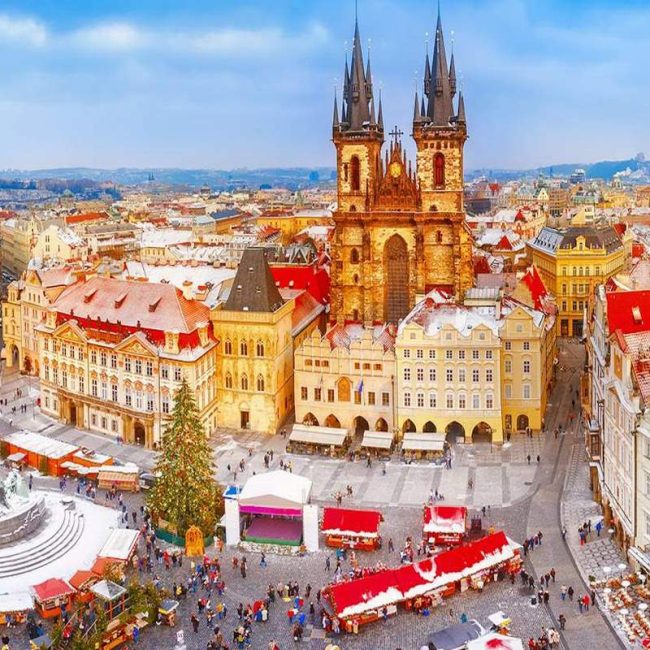 Η Πράγα την περίοδο των Χριστουγέννων μεταμορφώνεται σε έναν μαγευτικό προορισμό, βγαλμένο από σελίδες παραμυθιού. Οι πλατείες γεμίζουν με στολισμένα ξύλινα σπιτάκια, λαμπερά φώτα και το άρωμα από ζεστό κρασί και κανέλα πλημμυρίζει την ατμόσφαιρα. Στην καρδιά της Παλιάς Πόλης δεσπόζει ένα εντυπωσιακό χριστουγεννιάτικο δέντρο, πλαισιωμένο από μία από τις ομορφότερες αγορές της Ευρώπης.