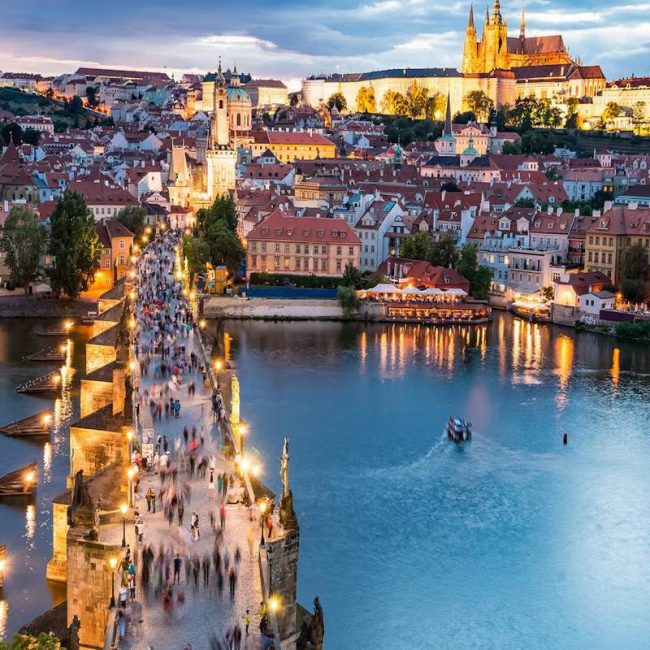 Η Πράγα, πρωτεύουσα της Τσεχίας, είναι μια πόλη που συνδυάζει ιστορία, αρχιτεκτονική και παραμυθένια ατμόσφαιρα. Η Παλιά Πόλη με τα πλακόστρωτα σοκάκια, τις γραφικές πλατείες και τον εντυπωσιακό Αστρονομικό Πύργο του Ρολογιού μαγνητίζει κάθε επισκέπτη, ενώ η Γέφυρα του Καρόλου προσφέρει μοναδική θέα στον ποταμό Μολδάβα και τα γύρω ιστορικά κτίρια.