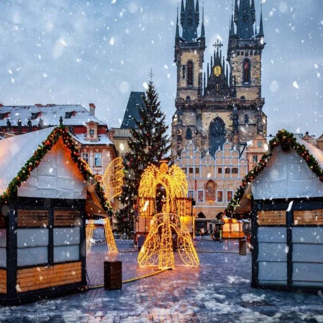 Κατά την περίοδο των Χριστουγέννων, η Πράγα μεταμορφώνεται σε ένα παραμυθένιο σκηνικό: οι πλατείες γεμίζουν φωτεινές αγορές, μυρωδιές από ζεστό κρασί και γλυκά πλημμυρίζουν τον αέρα, ενώ μουσικές και εκδηλώσεις δημιουργούν γιορτινή μαγεία σε κάθε γωνιά.